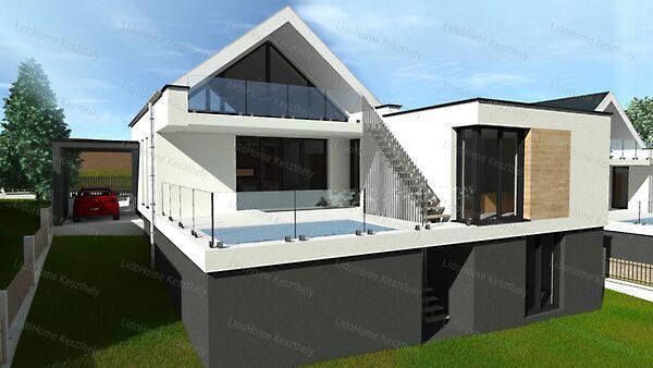 A családi ház kertje automata öntözőrendszer és robotfűnyíró telepítése esetén, minimális gondozással, ápolt és szépen karbantartott lesz. Ház alá dupla garázst is lehet kivitelezni.