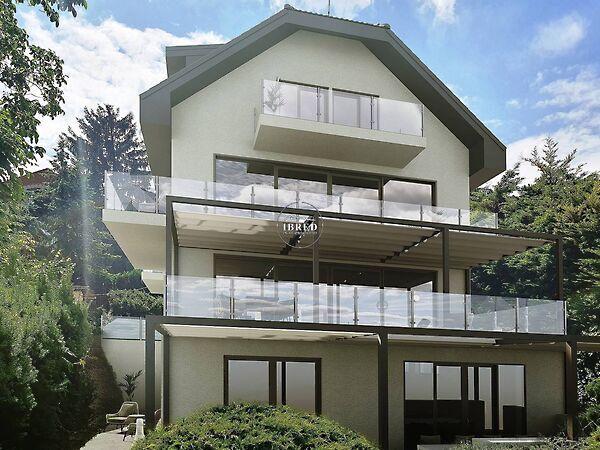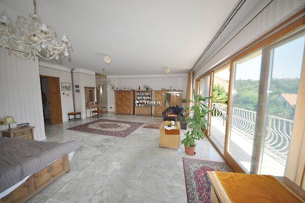 XII. Széchenyihegy egyik legkedveltebb, csendes, zöld mellékutcájában jó állapotú, minőségi anyaghasználattal saját célra megépített, brutto 450 nm lakóterű, több - összesen 64 nm - terasszal bíró, hegyvidéki panorámás, 8 szobás, igényes - akár HÁROM-NÉGY LAKÁSSÁ ALAKÍTHATÓ - családi ház eladó.