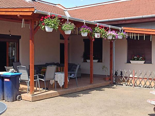 A ház előtt nagyméretű, --2024-ben Újonnan épített-- látványos, fedett TERASZ !