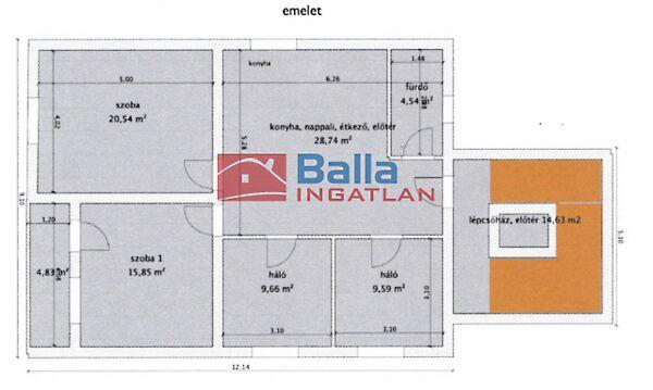 Emelet: amerikai konyhás nappali, 4 hálószoba, fürdőszoba