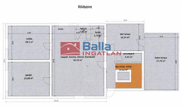 Földszint: 3 szoba, konyha, étkező, fürdőszoba, közlekedő