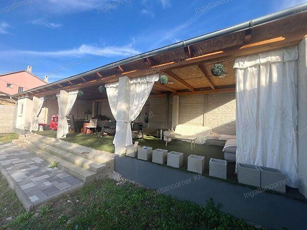 - A telek végében megépítésre került egy 45,6m2-es FEDETT TERASZ amihez tartozik egy téglából épült, szigetelt homlokzatú, műanyag nyílászárós, közművel ellátott, klímázott, zsindely borítású 5,4 m2 NYÁRI KONYHA és egy 2,4 m2-es Wc helyiség.