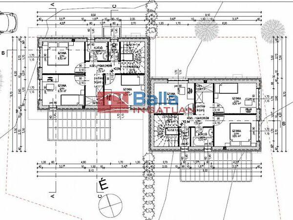 A két ikerház egymáshoz egyetlen szobaszakasszal csatlakozik, az eltolt kialakításnak köszönhetően a mindennapi élet zavartalan, az intimitás megmarad.