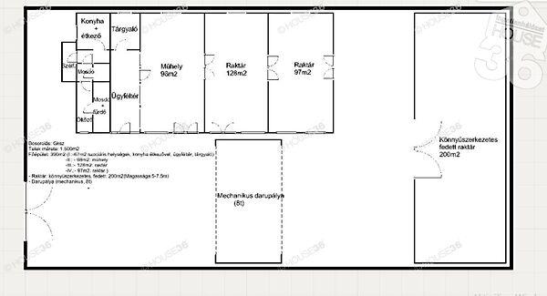 ELADÓ Kecskeméten a Mindszenti krt ról könnyen megközelíthető igényesen felújított telephely raktárral Jellemzői: Besorolás: Gksz Telek mérete: 1 500 m2 Főépület: 390 m2 I : 67 m2: szociális helységek konyha ügyféltér tárgyaló II : 98 m2: műhely III : 128 m2: raktár IV : 97 m2: raktár Raktár: könnyűszerkezetes fedett : 200 m2 Magassága:5 7 5 m Daru pálya: mechanikus 8t Teljesen leburkolt terület Elektromos kapu Kamera rendszer riasztó 2022 ben műszaki vezeték nyílászáró és tetőcsere szigetelés fűtéskorszerűsítés és esztétikai felújítások burkolat és konyhabútorcsere fürdőszoba ill festés Klimatizált helyiségek Az eladási ár az ÁFÁ t nem tartalmazza Figyelem az adatlap megbízónktól kapott adatok alapján készült pontosságáért felelősséget nem tudunk vállalni Szolgáltatásaink Kereső ügyfeleink számára INGYENESEK Amennyiben eladó kiadó ingatlana van vagy finanszírozási megoldást keres hívjon megtaláljuk a legjobb lehetőséget Önnek A HOUSE36 kínálatában található összes ingatlannal kapcsolatban tudok felvilágosítást nyújtani Hívjon bizalommal Az iroda legfrissebb aktuális kínálatát a HOUSE36 saját weboldalán találja
