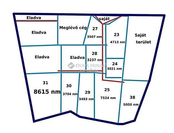 Az ipari terület 26376 m2 ebből 250 m2 maga az épület rajta, mely ipari árammal is ellátott.