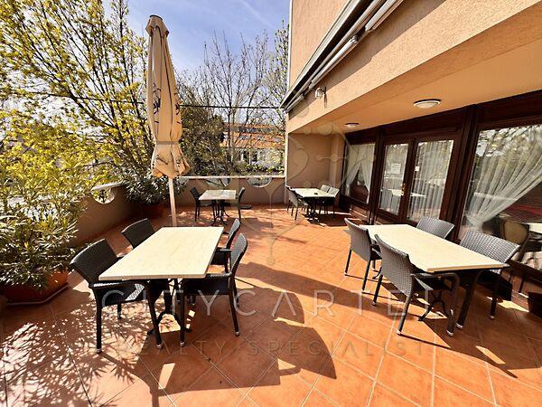 Budaörs közkedvelt, központi, jól megközelíthető részén kínálunk eladásra egy rendkívül barátságos, kellemes, jó állapotú, részben bútorozott, nagy teraszos, kertes, 14 kétágyas, légkondicionált, zuhanyzós-fűrdőszobás szobával rendelkező hotelt. A szobákban TV, telefon és minibár is biztosítja a vendégek maximális kényelmét.