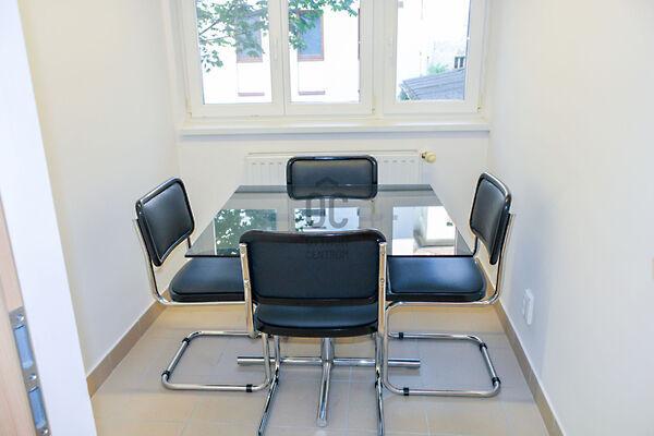 A földszinten található egy 45 m2-es irodatér, mögötte egy kisebb tároló és vizesblokk, melyek igény szerint teakonyhává alakíthatók.