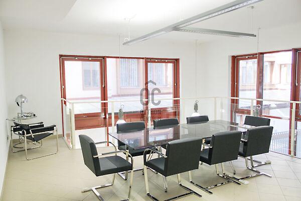 Az emeleti galéria 46 m2-es, rendelkezik egy 8 fős tárgyalótérrel és egy kisebb iroda helyiséggel.
