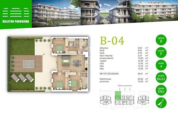 Ez a lakás nappali+3 hálós, 85nm alapterületű+ tartozik hozzá egy 53nm-es fedett terasz és 73nm privát kert is.
