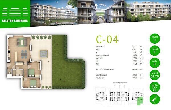 Ez a lakás nappali+2 hálós, 72nm alapterületű+ tartozik hozzá egy 59nm-es fedett terasz és 70nm privát kert is.