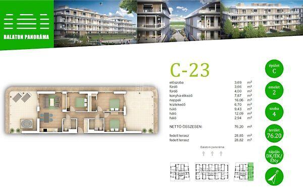 Ez a lakás nappali+3 hálós, 76nm alapterületű+ tartozik hozzá két (29nm+29nm) összesen 58nm fedett terasz is.