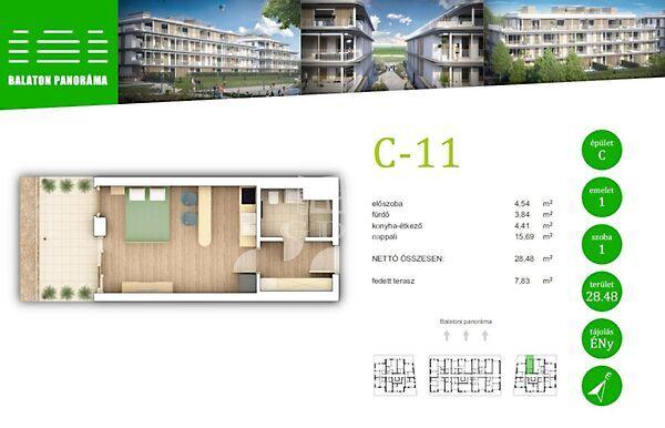Ez a garzonlakás 28nm alapterületű+ tartozik hozzá egy 8nm-es fedett terasz is.