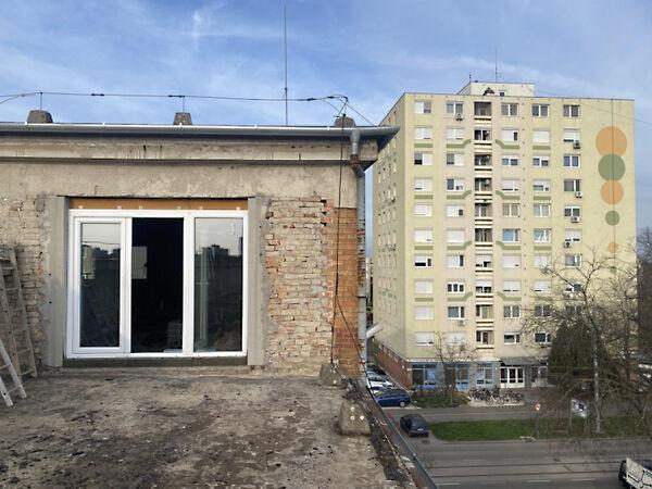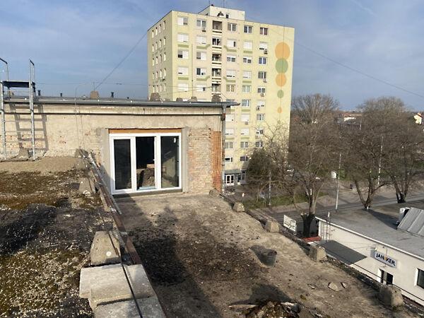 Eladó a fotókon látható kuriózum ingatlan! A társasházi lakás, a volt Mérleggyár tetején helyezkedik el. Igazi penthouse, nagy terasszal! Szerkezetkész állapotú - felújítás alatt áll - lakó vagy akár iroda célra hasznosítható! Megközelíthetősége egy tágas lépcsőházon keresztül történik. A legfelső szinten nincs szomszéd, bármelyik ablakon kinézve, csodálatos panoráma tárul elénk. Jelen állapotban egy 170 m2-es egybefüggő tér áll rendelkezésre, melynek válaszfalait a majdani új tulajdonos saját igényei szerint építtetheti be. A főfalak stabilak, azokba új, korszerű nyílászárók lettek beépítve. A 170 m2 beépített hasznos alapterület mellett egy 50 m2-es tetőterasz (ez felével kerül beszámításra, ezért 195 m2 szerepel a hirdetésben) is ki lesz alakítva hamarosan (ez már folyamatban van és a fenti árban értendő). Az eladó lakóegység fölötti tető szakszerűen felújított.