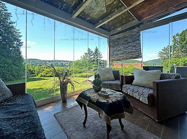 Panorámás sorházi lakás eladó! Csak irodánk kínálatában! Remetekertvárosban, a város egyik legelőkelőbb, legzöldebb részén 3 lakásos sorház középső, panorámás lakása eladó. A természetvédelmi terület közelében lévő ingatlan csendes, különleges adottságú, szinteltolásos kialakítású. Legimpozánsabb része a 180 fokos panorámával rendelkező, üvegezett télikert. Az ingatlan beosztása: Alagsor: 2 állásos, dupla garázs elektromos kapuval, hangszigetelt média szoba/fitness szoba, tároló, mosókonyha, infra/finn szauna, pihenő sarok Földszint: teraszkapcsolatos, amerikai-konyhás nappali, mosdó, közlekedő, lépcsőház Emelet két szoba, erkély (15 nm,16 nm), gardrób, fürdő Tetőtér: panorámás szoba, fürdő. További extrák: Zsolnay kandalló, két télikert, hangszigetelt média helyiség, minden helyiségben klíma, riasztó, kaputelefon, kamera-rendszer, öntöző rendszer elektromos redőny, részben szúnyoghálóval, festett üvegablakok megvilágítással. Az ingatlan ideális választás olyan családoknak, akik szeretnének egy csendes, zöld környezetben élni, de nem akarnak lemondani a városi élet nyújtotta kényelmekről és szolgáltatásokról. A környéken több neves iskola és óvoda is található, például Áldás utcai iskola, német iskola, Britannica International School, Százszorszép óvoda. Ha a hirdetés felkeltette az érdeklődését, kérem, keressen, akár hétvégén is! Az alaprajz és az adatok tájékoztató jellegűek. English: Panoramic townhouse apartment for sale! Only available in our office! For sale a panoramic, central apartment of a 3 apartment terraced house in Remetekertváros, in one of the most exclusive, greenest part of the city. The property is located close to a nature reserve and is quiet, unique and has a split-level design. Its most impressive feature is the glazed winter garden with 180 degree panoramic views. Layout of the property: Basement: 2-stall double garage with electric door, soundproof media room/fitness room, storage room, laundry room, infra/fin sauna, relaxation corner Ground floor: terrace connected, living room with American style kitchen, washroom, hallway, staircase Upstairs two bedrooms, balcony (15 sqm,16 sqm), walk-in closet, bathroom Attic: panoramic room, bathroom, Additional extras: Zsolnay fireplace, two winter gardens, soundproof media room, air conditioning in all rooms, alarm, intercom, camera system, irrigation system electric blinds, partly with mosquito nets, stained glass windows with lighting. The property is an ideal choice for families who want to live in a quiet, green environment, but do not want to miss out on the amenities and services of city life. There are several reputable schools and kindergartens in the area, such as the Áldás Street School, the German School, Britannica International School, Daisy Kindergarten. If the advertisement is of interest to you, please contact me, even on weekends! The floor plan and data are for information only.