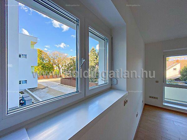 Kaposváron a belvárosban, a Dési Huber utcában - a kórház közelében - igényes kivitelben épült, modern architektúrájú 30 lakásos, új társasház 2. emeletén, 80 m2-es lakás - 10 m2-es erkéllyel együtt eladó. A lakásban nappali-étkező-konyha, 3 szoba, közlekedő, szélfogó, fürdőszoba, wc helyiségek kerültek kialakításra. Az épület korszerű energetikájú, a lakás fűtés levegő-víz hőszivattyús Nibe fűtésrendszerrel - padlófűtéssel, a fürdőszobában elektromos törölközőszárító radiátorral - van megoldva, továbbá a lakás hűtése fan-coil Gree rendszerrel történik. A lakás fűtéséhez, vagy hűtéséhez szükséges villamosenergiát az épület tetején elhelyezett napelemek biztosítják, a társasházban központi vízlágyító berendezés is beszerelésre került. A fürdőszobában magas minőségű Wellis szerelvények kerültek beszerelésre. A lakáshoz igény esetén 3.000.000.- Ft-ért az épület zárt udvarában 1 személyautó részére parkolóhely megvásárolható! Az ingatlan megvásárlásához CSOK igényelhető!