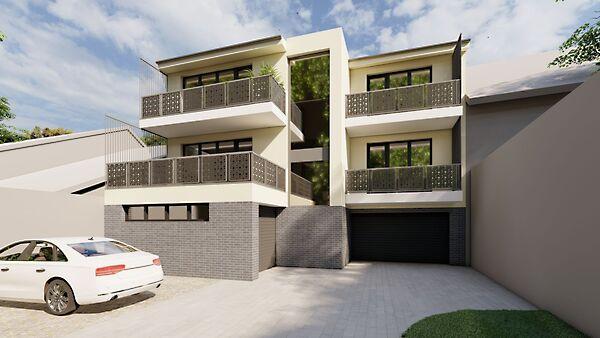 Földszinten garázsok –kocsibeállók, I.emelet 2 lakás, II. emelet 2 lakás!
