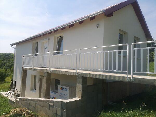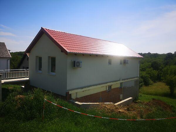 Zala megye, Nemesbük 65m2-es újépítésű lakás eladó. Hévíz fürdővárosának szomszédságában található kétszintes ingatlan földszintjén található lakásban 2 szoba, nappali, konyha, étkező, közlekedő, fürdőszoba és illemhelyiség kerül kialakításra. A 2025 első negyedévében elkészülő, légkondicionált lakás melegéről hőszivattyús fűtés gondoskodik. A kétszintes ingatlan egyben, vagy szintenként is megvásárolható. A két lakáshoz tartozó közel 1200m2-es telken a gépjárművek tárolására udvari beálló áll a tulajdonosok rendelkezésére.