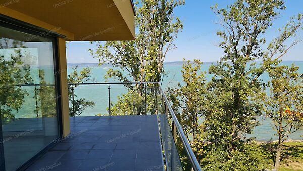 Az ötemeletes apartmanház közvetlenül a Balaton partra (szabadstrand) épült,