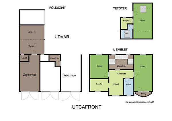 - egy utcafrontra nyíló 20 m2-es üzlethelységet, mosdóval ( jelenleg bérlik )