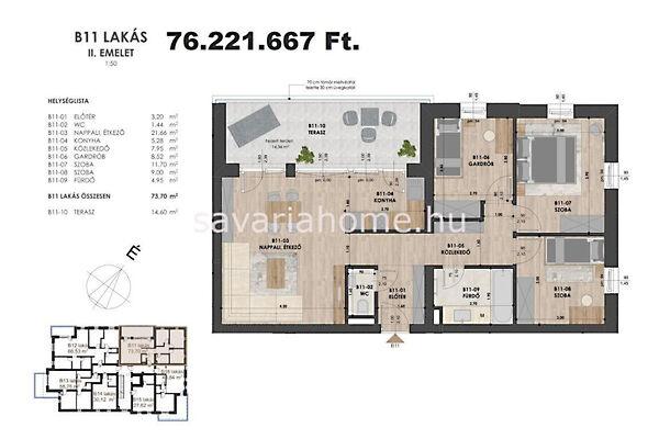 A szóban forgó ingatlan 74nm, (nappali+2szoba),+14,6nm-es terasz.