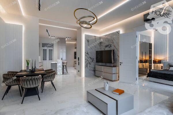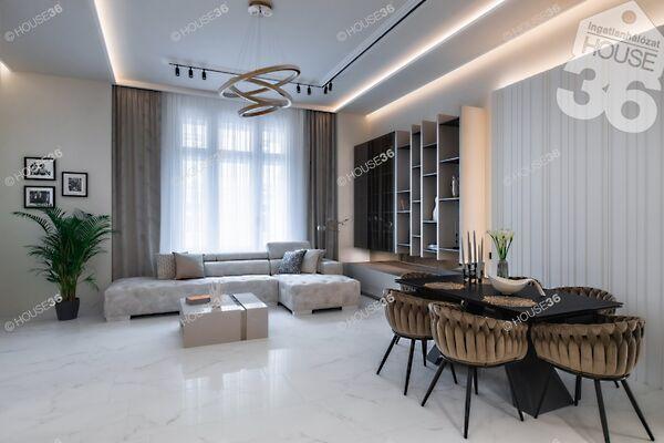 Budapest egyik legismertebb sétáló utcájában található ez a rendkívül kifinomult 3 7 méter belmagasságú luxus lakás Neves tervezőiroda által megálmodott és egyedileg kivitelezett értékálló polgári lakás Egyedileg tervezett bútorok minőségi hidegburkolatok led fény világítások mellett különleges Onyx kőből épitett bárpult is található Figyelem az adatlap megbízónktól kapott adatok alapján készült pontosságáért felelősséget nem tudunk vállalni A HOUSE36 kínálatában található összes ingatlannal kapcsolatban tudok felvilágosítást nyújtani Hívjon bizalommal Szolgáltatásaink Kereső ügyfeleink számára ingyenesek Az iroda legfrissebb aktuális kínálatát a HOUSE36 saját weboldalán találja