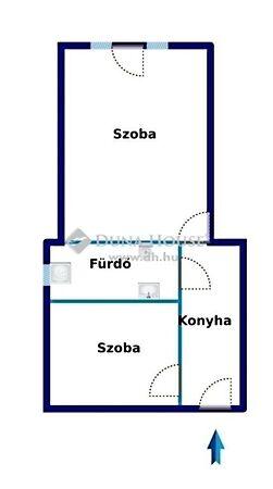 A bejárati ajtón belépve rövid folyosó, annak a végében kis főzőfülke majd a zuhanyzós fürdőszoba található. A szoba jobbra nyílik, az ablakai belső udvarra néznek.
