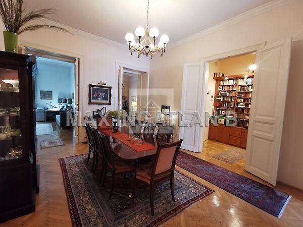 Budapest VI.kerület belvárosában, a Király utcában, közvetlen a Gozsdu udvar szomszédságában kínálunk eladásra egy 1. emeleti, bruttó 175 nm-es, 4 szobás,teraszos,2 oldali tájolású tégla lakást. AZ épület 1905-ben épült,folyamatosan karbantartott, jó állapotú kívül belül. Az eladásra kínált ingatlan is kifogástalan állapotban van. Jó hangulatú otthon, tágas terekkel, nagy belmagassággal, télikerttel, illetve egy belső udvarra néző, nyugati tájolású terasszal. Speciális elrendezésének köszönhetően 2 db, egymástól teljesen elkülönített lakrészből áll. Az egyik lakrész bruttó 145 nm, a kisebbik belső 2 szintes stúdió lakrész összesen 30 nm lakótérrel rendelkezik. A belső kert, gondozott, parkosított, kellemes látvány a teraszon ülve.