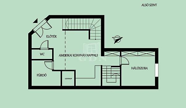 A 49 nm-es lakás hat éve lett felújítva, 100%-ban kihasználták a belmagasság adta lehetőségeket, a galériákon további 2 teljes értékű hálószobát csináltak, egy belső kétszintes lakást létrehozva ezzel.