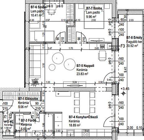 - Nappali, két hálószoba szoba, konyha étkezővel, fürdőszoba+WC és egy előszoba került kialakításra, továbbá tartozik az ingatlanhoz egy 21 m2-es erkély is