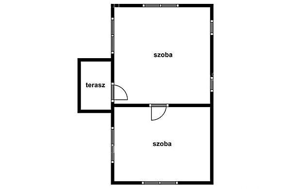 Jelenleg a ház két helyiségből áll. (32 m².)
