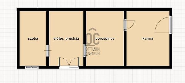 - középen egy előtér jellegű helyiség, az egykori présház,