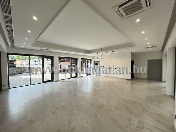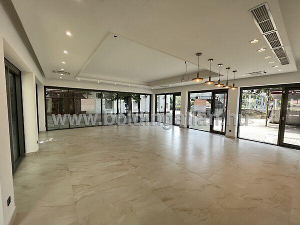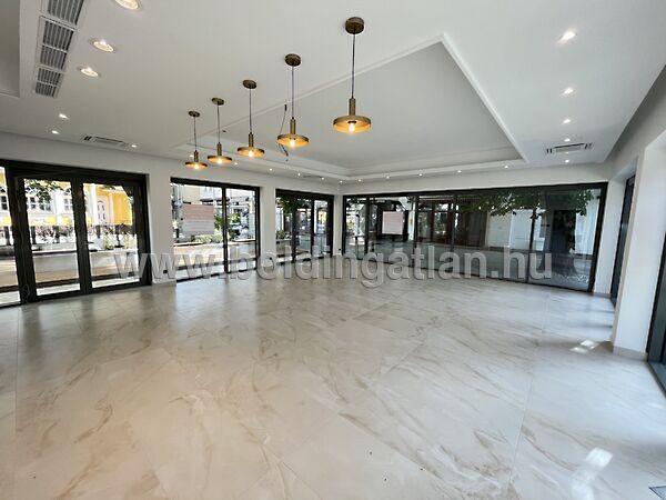 Siófokon a Fő térnél, a Kálmán Imre sétányon, új építésű, korszerű társasház földszintjén található 107,91 m2-es modern, vendéglátó üzlethelyiség eladó. A minőségi anyagokból készült ingatlanban egy stílusos, 67,31 m2-es vendéglátó üzletrész található, amely igényesen lett kialakítva, nagy portálok nyílnak az épület belső udvarára. Az üzletben található még közlekedő - előtér, továbbá innét nyílik 2 db mosdó és 3 db wc is. Ezen kívül az üzlethelyiségben 16,23 m2-es raktár-áruátvevő helyiségek is találhatóak élelmiszerek, italok, vagy egyéb árukészletek tárolására. Az épület fűtése korszerű, DAIKIN levegő/víz hőszivattyúval került kivitelezésre, és légkondicionáló is felszerelésre került. Az üzlethelyiség könnyen megközelíthető és parkolási lehetőség is megoldott a közelben. Az ingatlan ideális lehetőség egy nívós kávézó, cukrászda, vagy egyéb üzlethelyiség részére. Az ingatlan vételára: 140.283.000.- Ft + ÁFA!