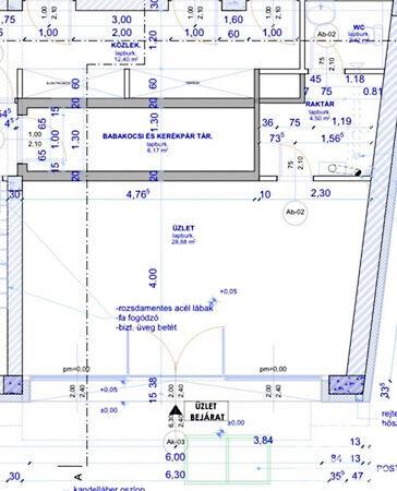 Üzlettér+raktár+mosdó