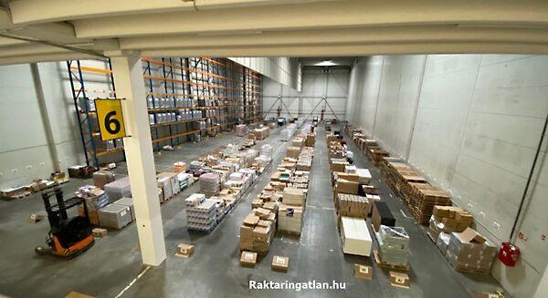 Állványzat is igény szerint használható, 800 kg/raklap terhelhetőséggel. Füst és tűzjelző rendszer kiépítve..