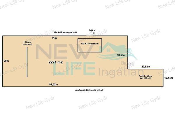 Telekterület: 2271 m2, egy szendvicspanel irodaépület áll rajta, kb. 100 m2.