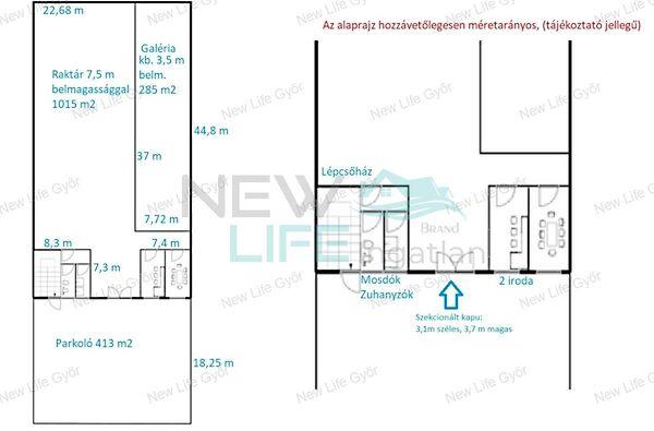 Győr Szabadhegy városrészében kiadó ipari, kereskedelmi, raktározási, szolgáltatói célra kiválóan alkalmas 1015 m2-es csarnoképület 7,5 méteres belmagassággal (+ 285 m2 galéria 3,5 m magassággal).