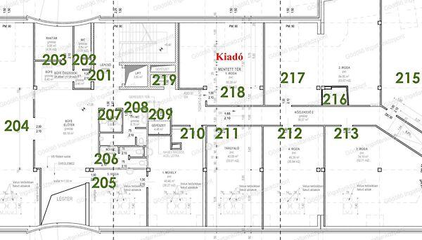 Az iroda a II. emeleten az épület ÉNy-i oldalán helyezkedik el, az iroda klimatizált, hűtés-fűtés biztosított, laminált parketta burkolattal.