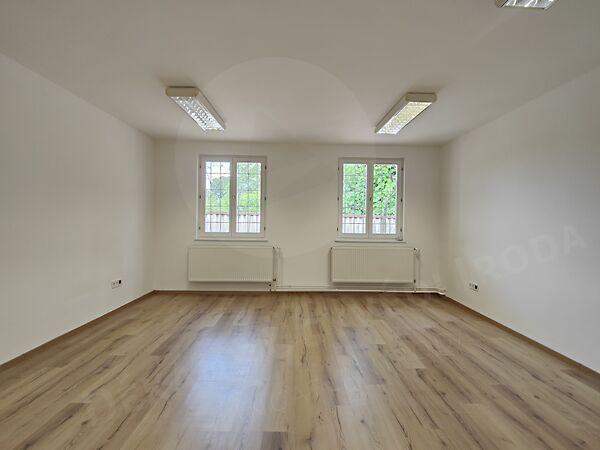 Az iroda klimatizált, ablakai hőszigetelt műanyagok, a hátsó parkolóra néznek, így csendes.