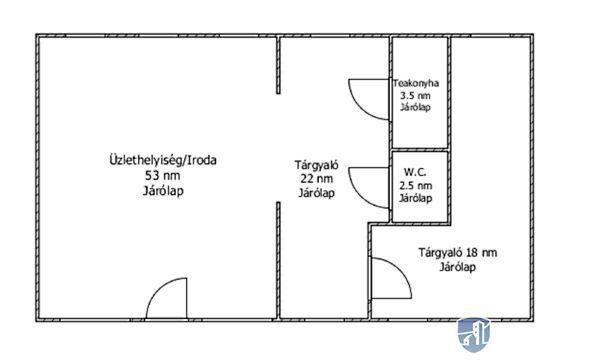 A helyiség alkalmas lehet irodaként történő használatra, hiszen jelenleg elszeparált tárgyaló, teakonyha és önálló vizesblokk található benne.
